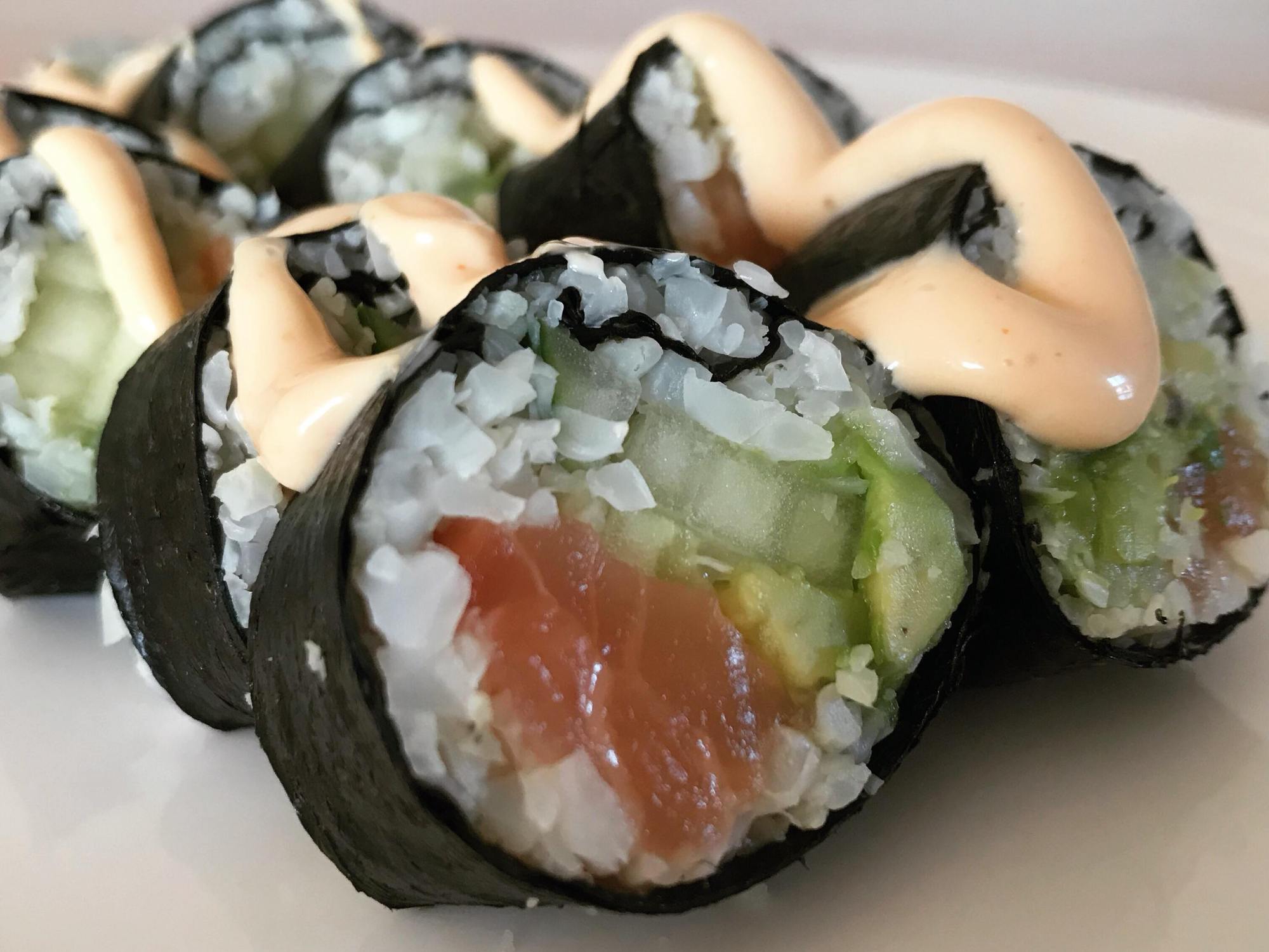 Pour célébrer ma perte de poids, j’ai décidé de me faire des sushis maison! J’ai remplacé le riz par du chou-fleur. C’est à s’y méprendre!