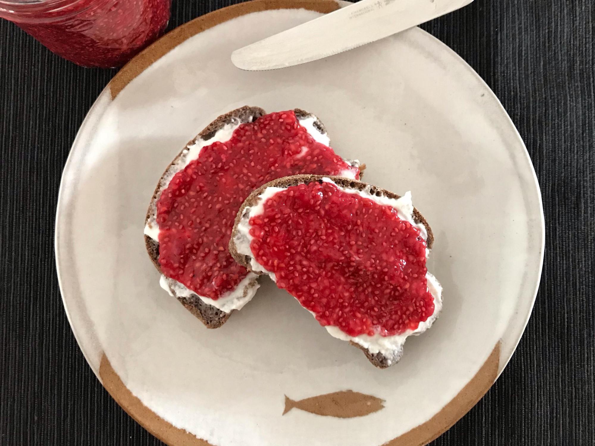 - Ajouter les graines de chia et l’eau à la confiture et bien mélanger pendant environ 1-2 minutes.