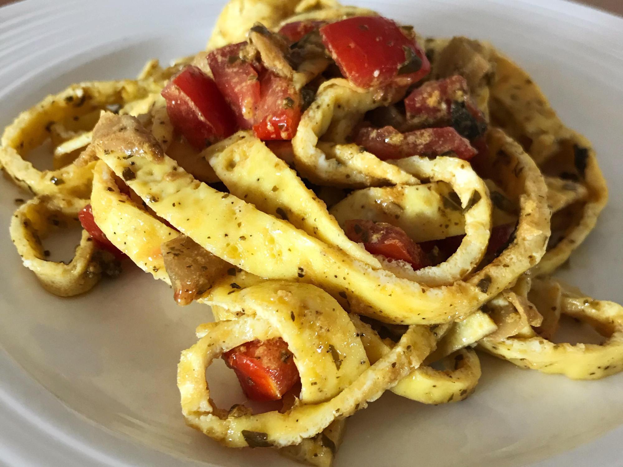Judith : « Je m’attendais à ce que ça goûte les oeufs presque comme une omelette. Surprise! Les pâtes aux oeufs prennent le goût de la sauce!!! Tellement rapide à faire que même des enfants pourraient en préparer. »