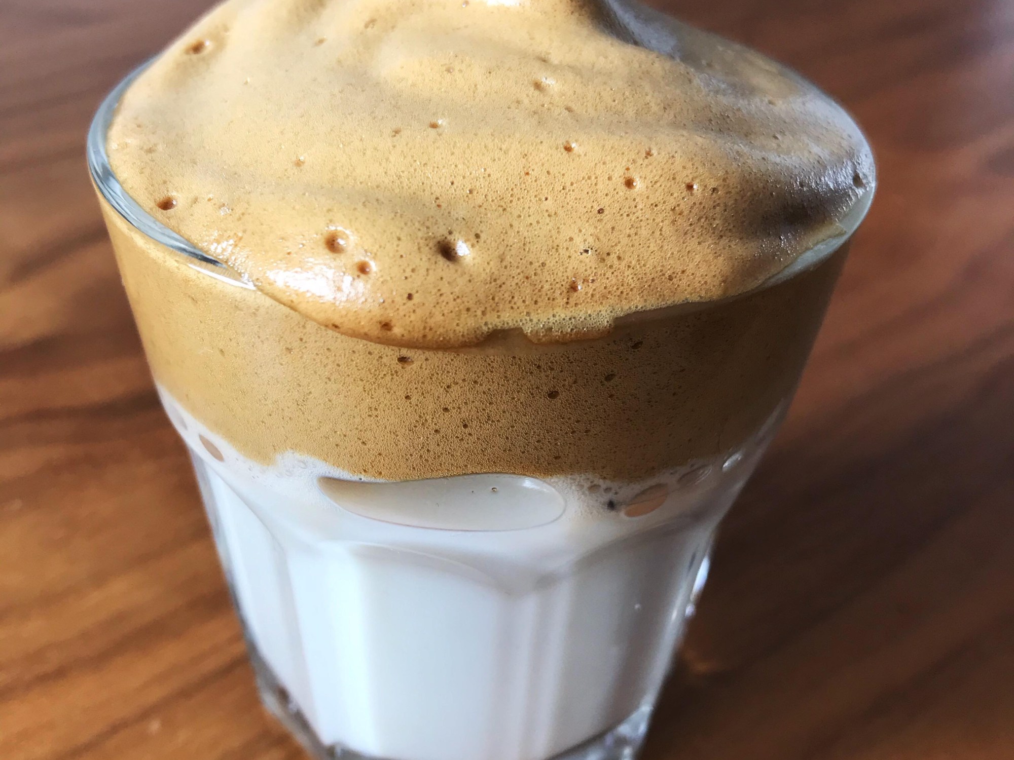 - Verser le lait d’amandes dans un verre et ajouter la mousse sur le dessus! Pour un café glacé, vous pouvez ajouter des glaçons.