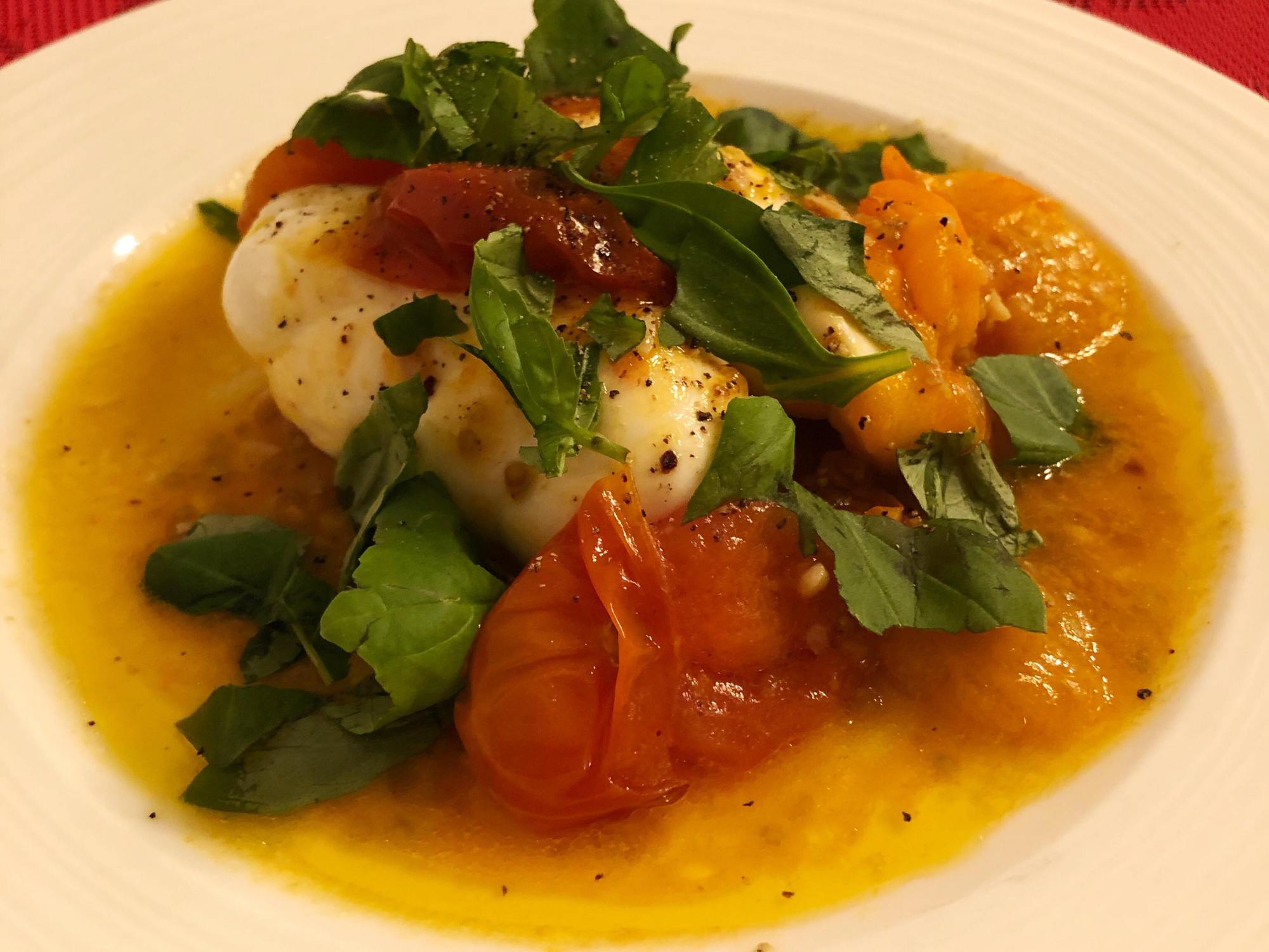 - Verser les tomates sur la Mozzarella.
